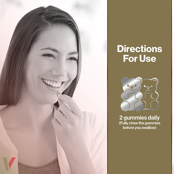 Take 2 gummies per day. Our strawberry flavoured energy gummies can help you boost your energy levels. Plus, they are tasty and easy to take! Each of our energy gummies includes Vitamin D, Vitamin B3, Vitamin B6, and Vitamin B1.