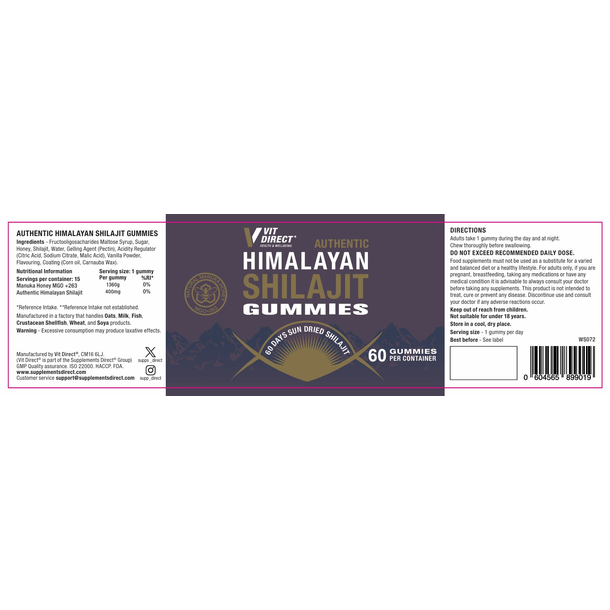 Shilajit gummies (sometimes called Himalayan gummies) offer an easy way to boost your energy levels and overall wellness. These Vit Direct shilajit gummies are the ideal food supplement for those who prefer chewable gummies to capsules, and they're flavoured with natural manuka honey for a more pleasant taste.